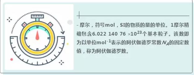 - 摩爾,符號mol,SI的物質(zhì)的量的單位。1摩爾精確包含6.022 140 76 ′1023個基本粒子。該數(shù)即為以單位mol-1表示的阿伏伽德羅常數(shù)NA的固定數(shù)值,稱為阿伏伽德羅數(shù)。